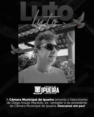 Neste momento doloroso, a Câmara Municipal de Ipueira, em nome de todos os vereadores e do Poder Legislativo, se solidariza com os familiares de Diego Araújo Macêdo, falecido ontem (06).