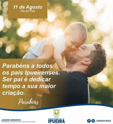 A Câmara Municipal de Vereadores de Ipueira, deseja um feliz dia dos pais a todos os Ipueirense. Ser pai é dedicar tempo a sua maior criação. Parabéns a todos.