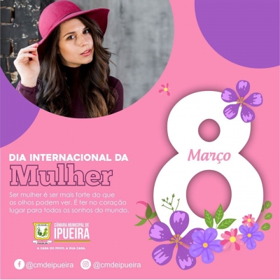Hoje é comemorado o Dia Internacional da Mulher, uma data que representa conquistas e a luta pela igualdade e o respeito. É nosso dever fazer com que este dia seja lembrado em todos os 365 dias do ano. Um feliz dia a todas as mulheres de Ipueira.